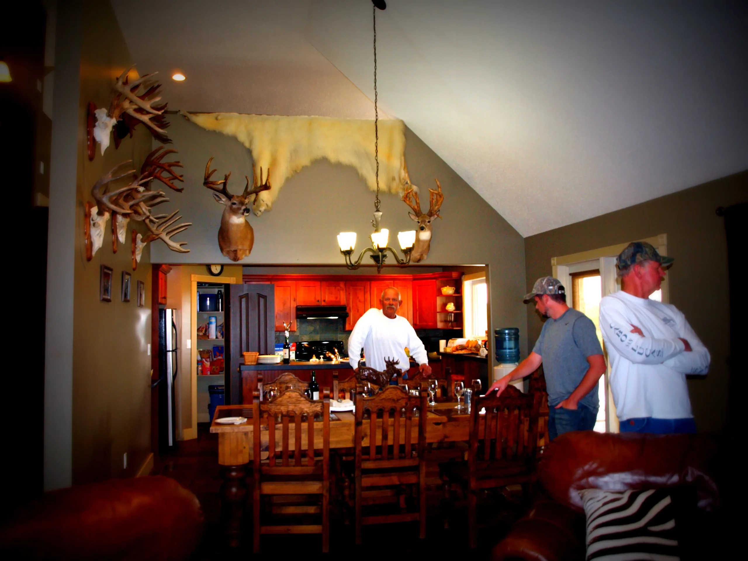 The main lodge has all the amenities you would expect. Large dining room, comfortable living room fireplace surrounded by dozens of trophies from all over the world!